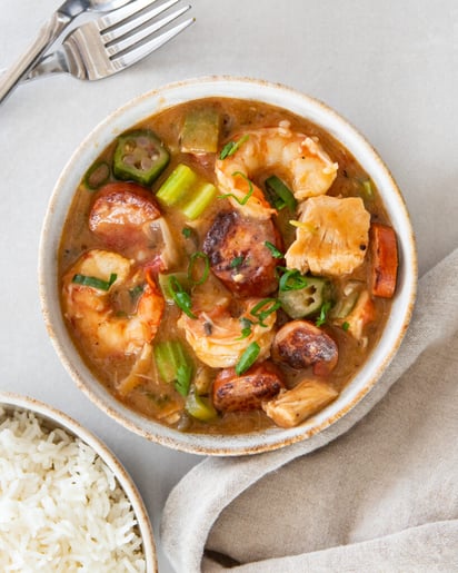- Add the oil to the pot and whisk in flour until combined. Continue to cook, stirring constantly, until the mixture reaches a dark brown color (similar to milk chocolate), about 20 minutes. This is called a roux. Pay close attention as it cooks, adjusting the heat and making sure it doesn’t burn.