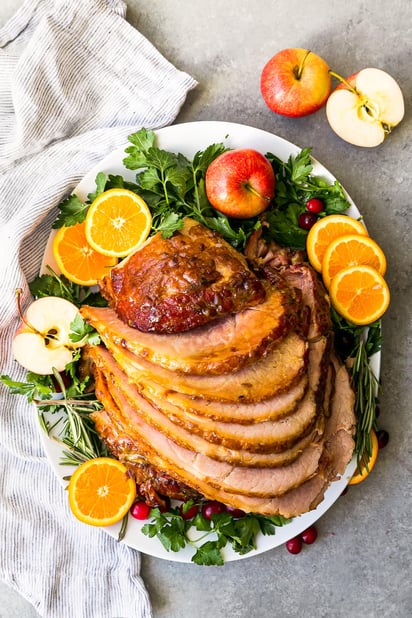 - 6 to 8 pound fully cooked spiral bone-in ham