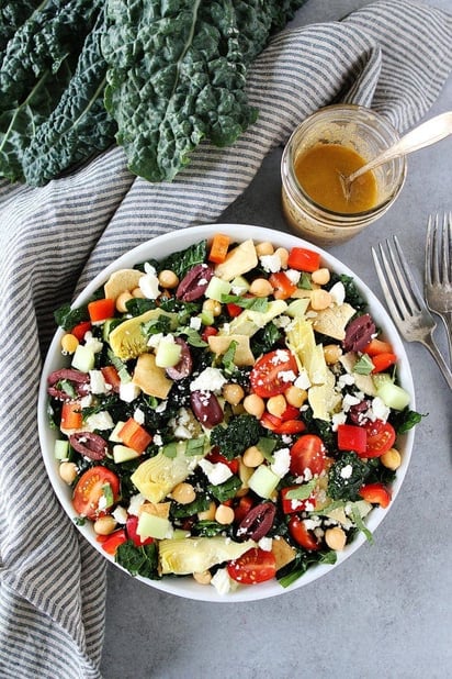Mediterranean Kale Salad with Hummus Dressing