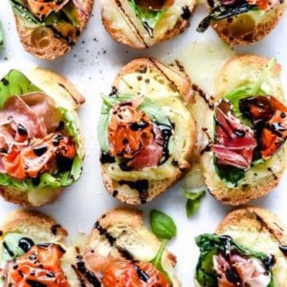 Melted Mozzarella Caprese Crostini Toasts
