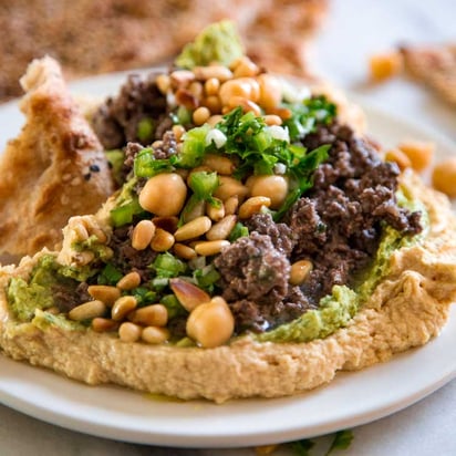 Hummus with Lamb and Lemon Herb Sauce